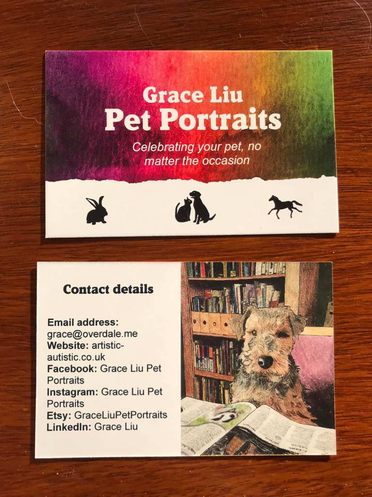 Pet portrait commissions have been coming in thick and fast lately, and so I thought it was high time I had my own business cards created. Thanks to VistaPrint UK, I am very pleased with how they have turned out!